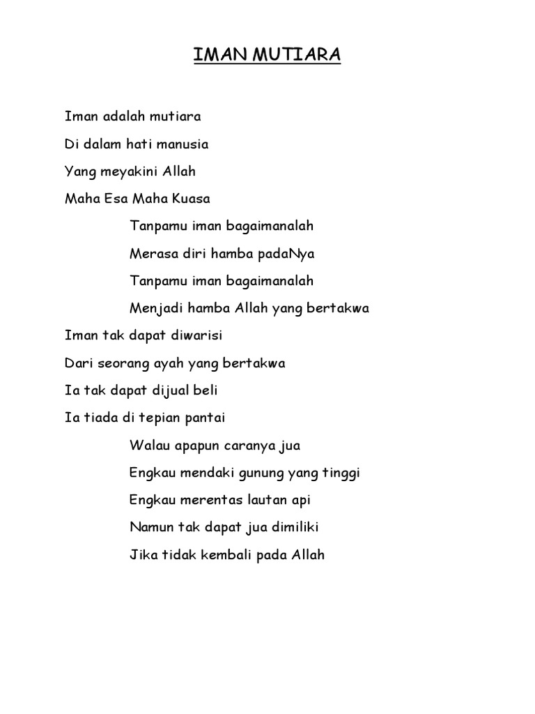 Lirik Lagu Iman Adalah Mutiara Lirik Lagu Iman Mutiara Dari Raihan Lirik Lagu Terbaru Iman Adalah Mutiara Di Dalam Hari Manusia Yang Menyakini Allah Maha Esa Maha Kuasa Gatu Didin. Merasa diri hamba padaNya. Create and get 5 IQ.